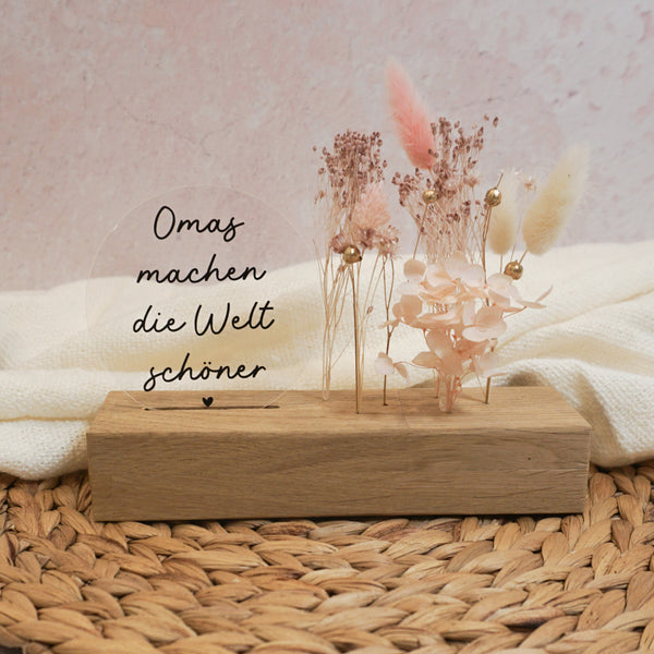 Hier findest du mit Liebe gefertigte Einzelstücke aus Trockenblumen, Naturmaterialien und hochwertigen Details. Ob als Geschenk für deine beste Freundin, zur Geburt, zum Muttertag oder einfach für dich selbst, unsere Kreationen machen besondere Menschen glücklich.